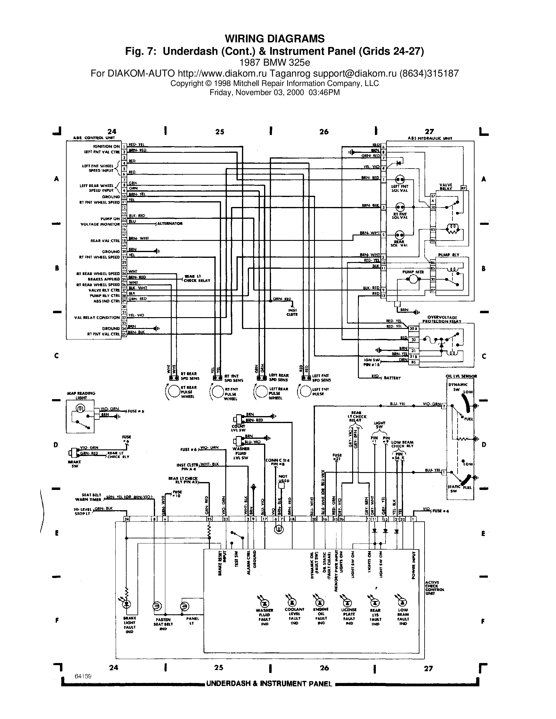 BMW 325e 1987 Wiring Diagrams # 7 - Underdash and Instrument Panel grids 24 -27