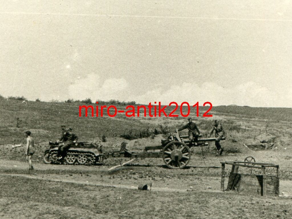 Foto, Wehrmacht, NSU Kettenkrad mit Geschütz im