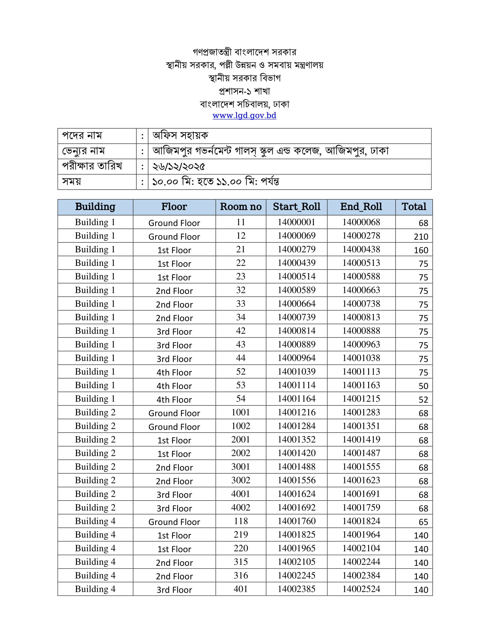 LGD Office Sohayok Exam Seat Plan 2025 PDF 1