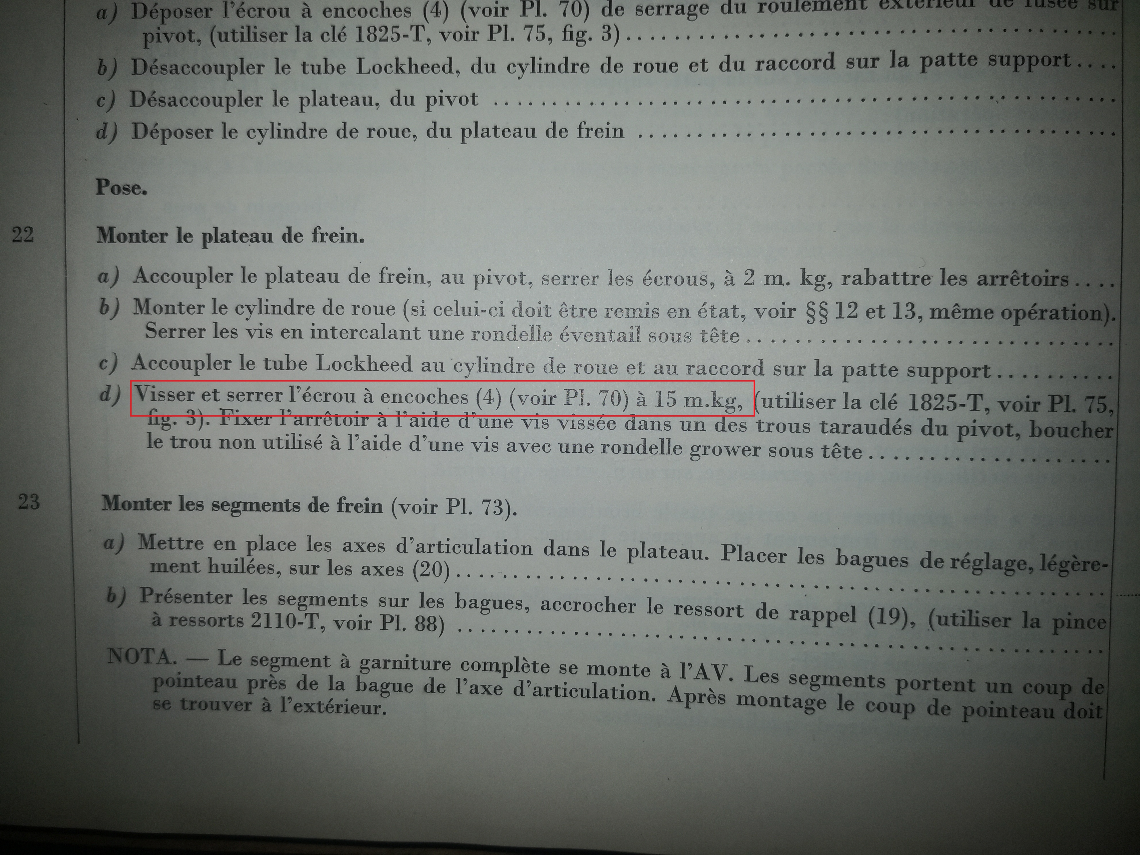 Pose plateau frein