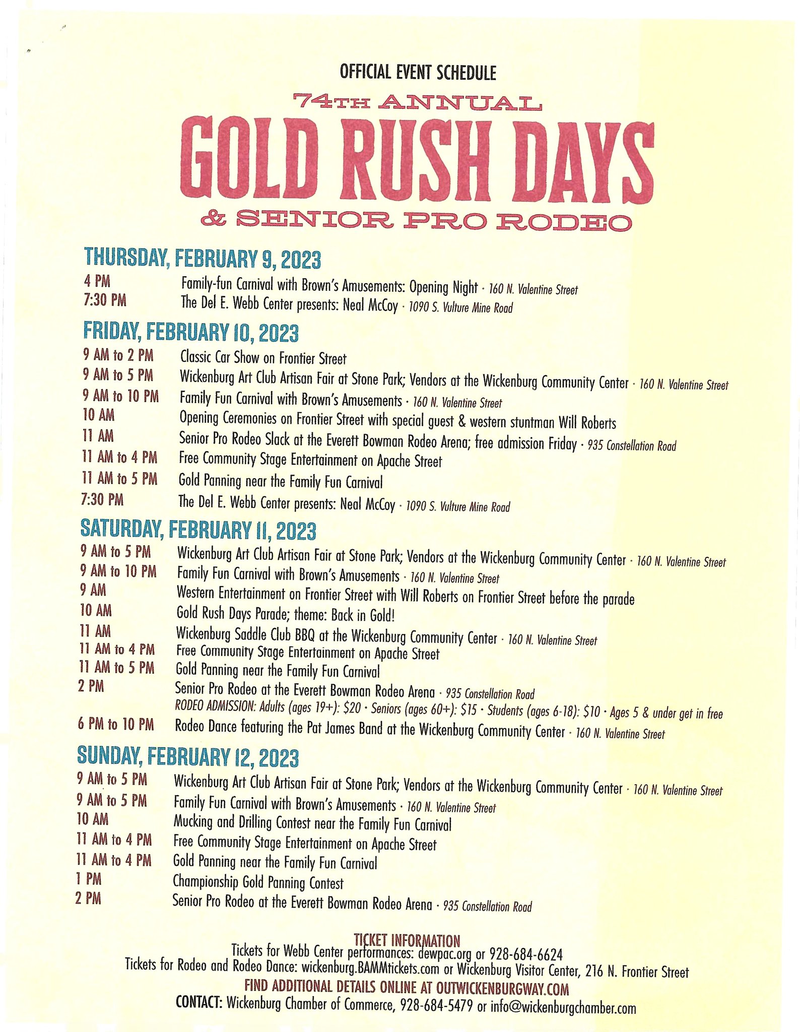 Gold Rush Days Schedule