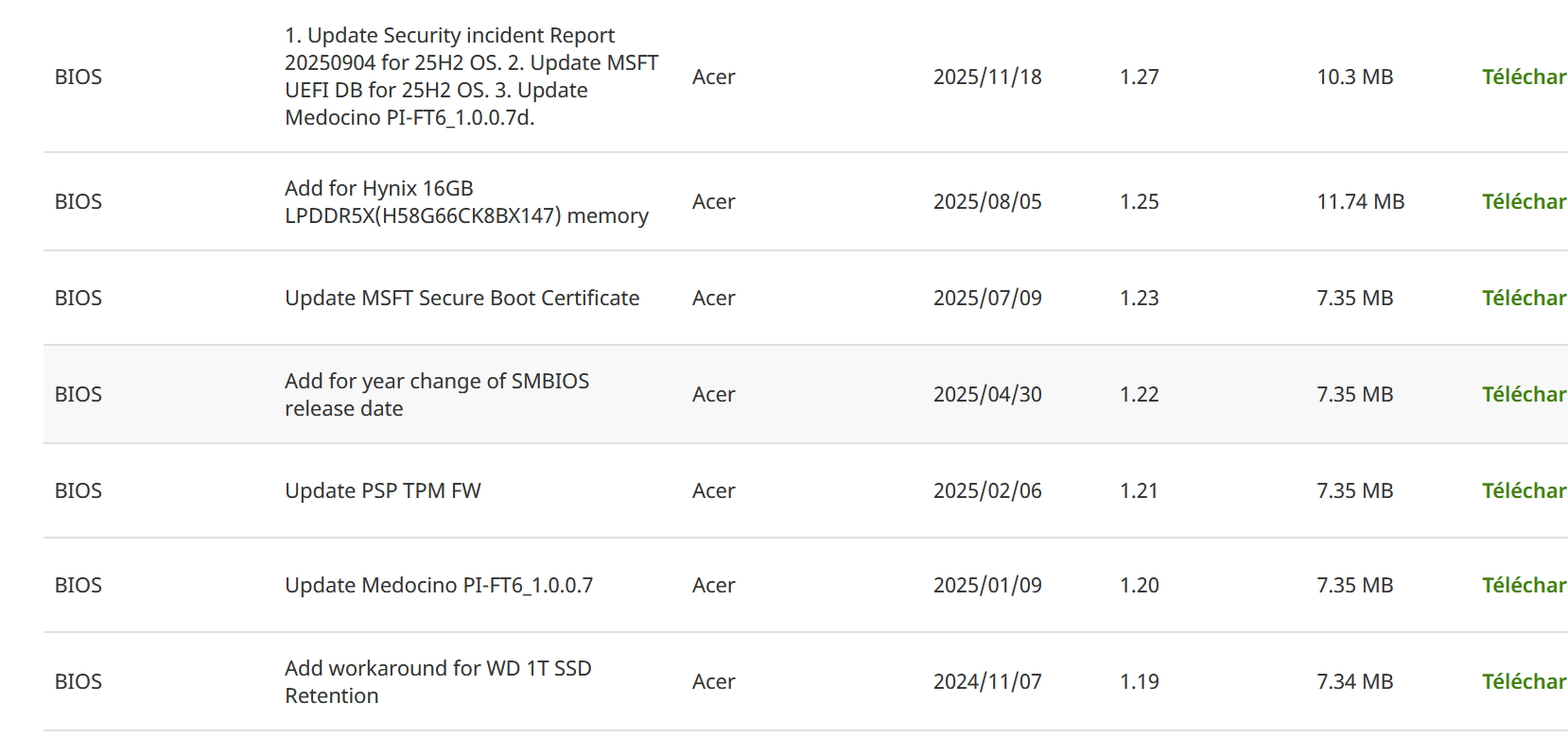 Capture d écran bios Acer pour aspire 3 15 2026 02 13 142213
