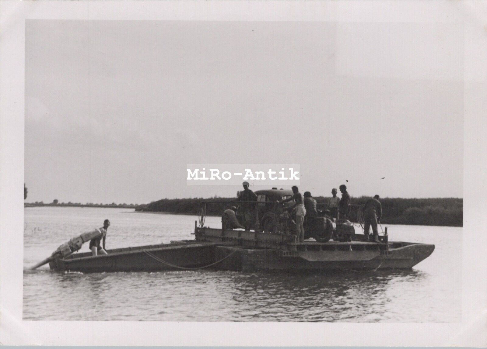 2 x Foto, 167-Inf.Div. General Stab, Pkw auf Floßsackfähre, Bug, Polen.