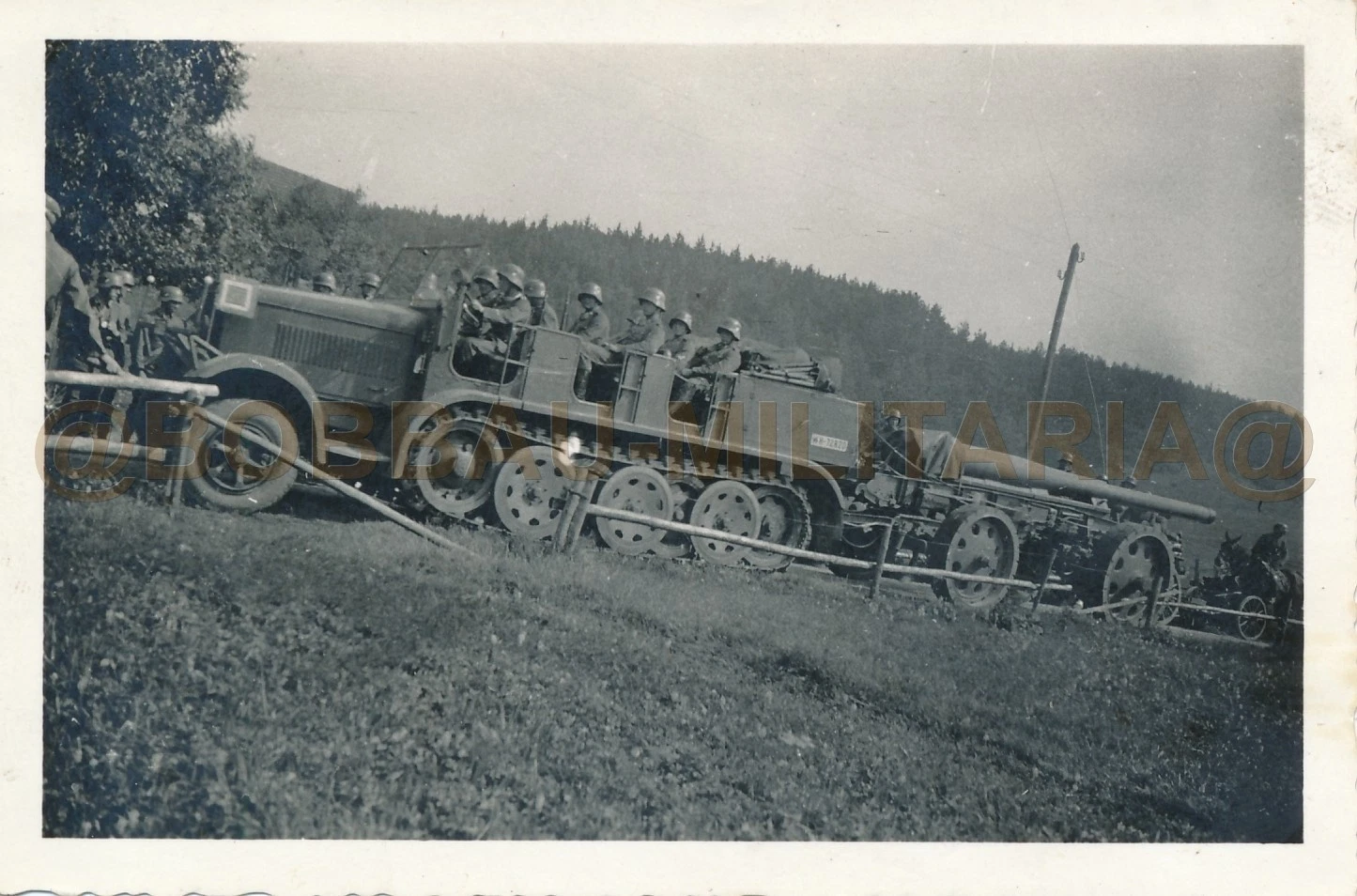 L444 Foto Wehrmacht SdKfz Halbkette Zugkraftwagen mit schwerer Feldkanone Haubit