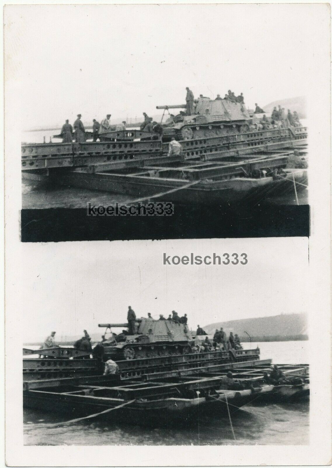 Foto Panzerhaubitze Hummel auf einer Ponton Fähre der Pioniere an der Ostfront !