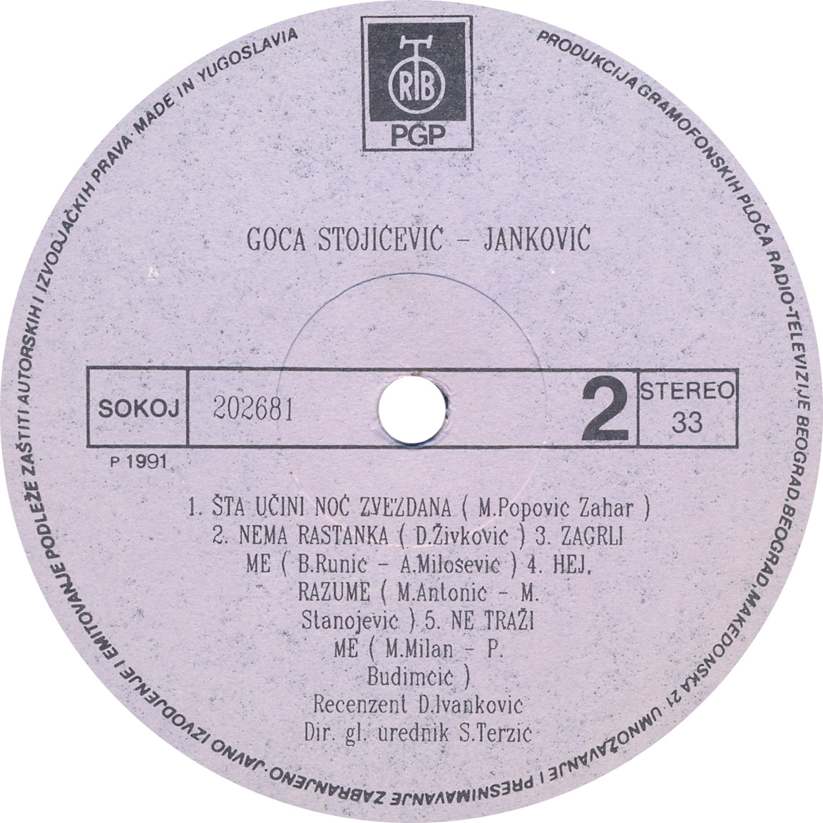 Gordana Stojicevic 08.10.1991. LP B-Strana