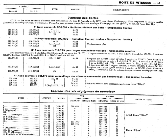 Tableau des boites