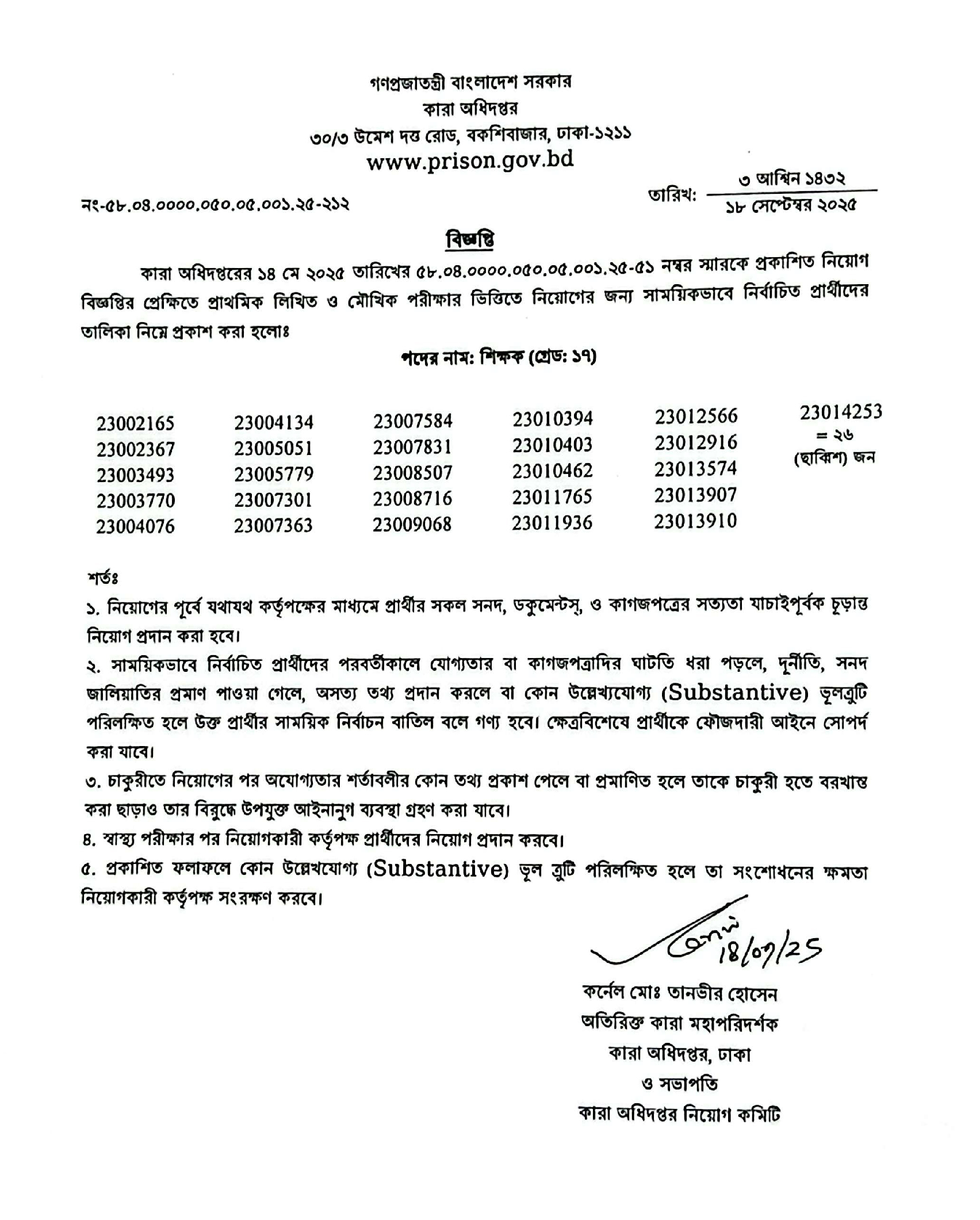 Prisons Teacher Final Result 2025 PDF