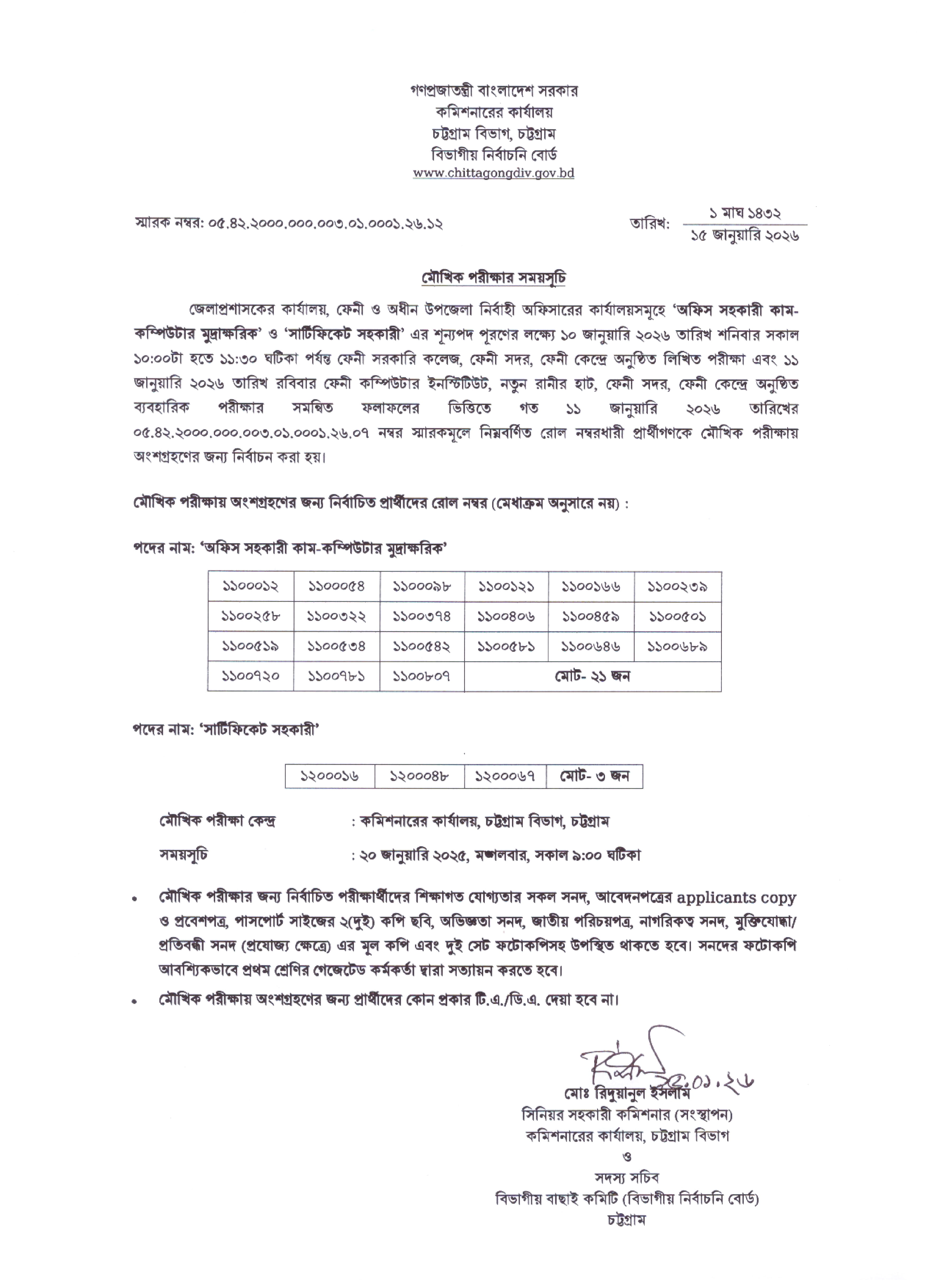 DC Office Feni Viva Date 2026 PDF 1