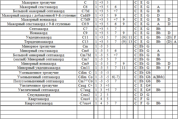 Таблица аккордов
