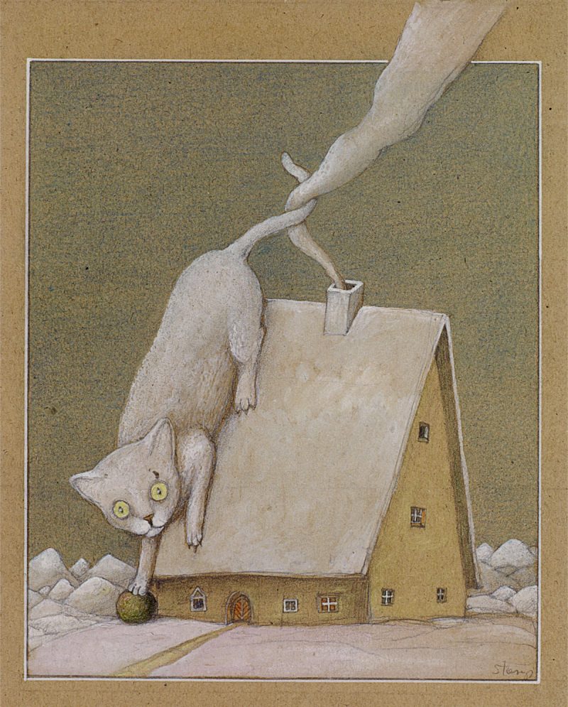 09-Stasys-Ilustracja-do-ksiazki-Yves-Velan-Le-Chat-Muche-1986-800x995