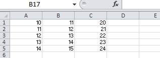 Test data 5 rows of columns A - C to be summed in column D