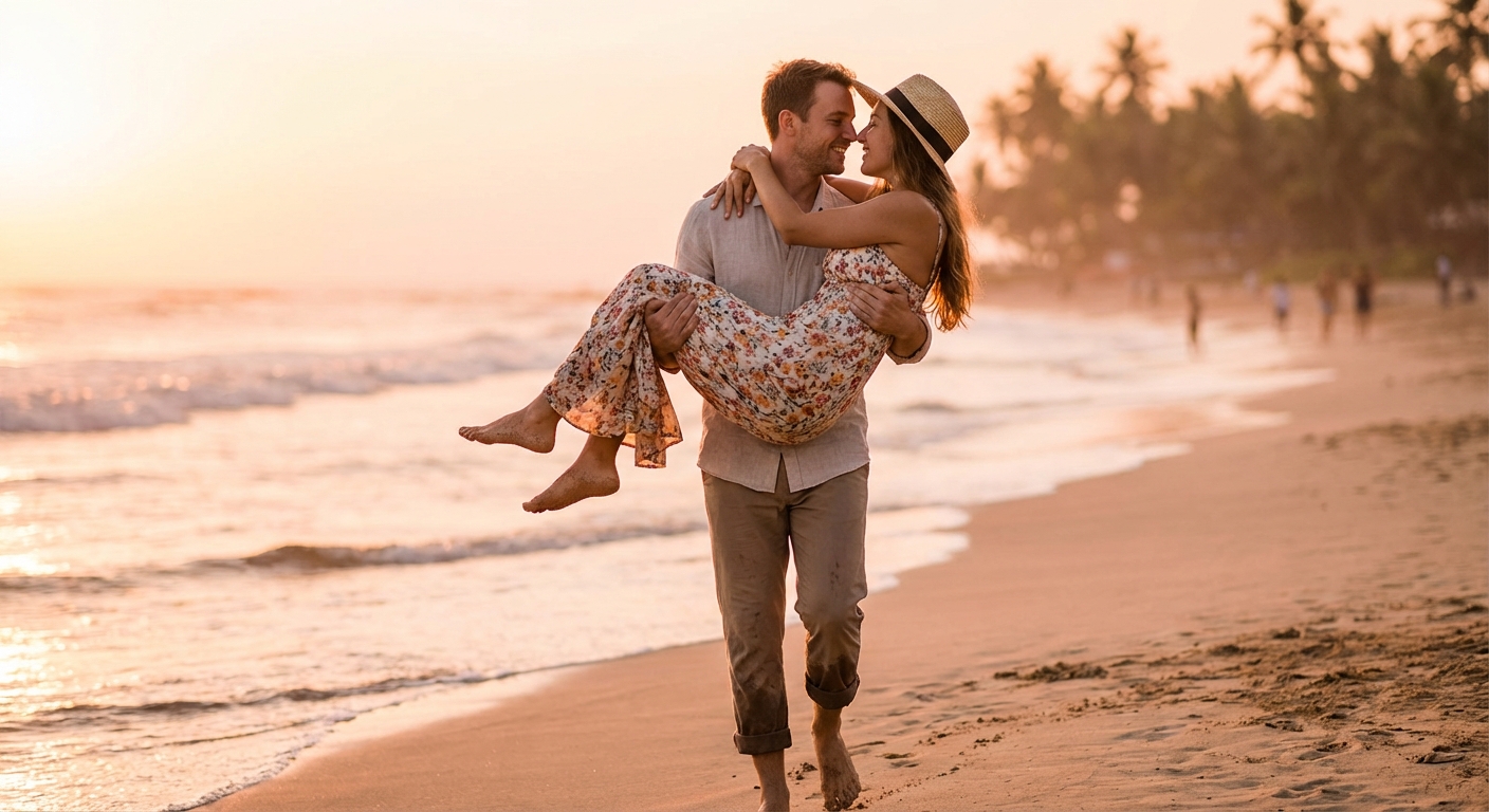 Hailuo Image Man carrying a woman in his ar 455353391303581697