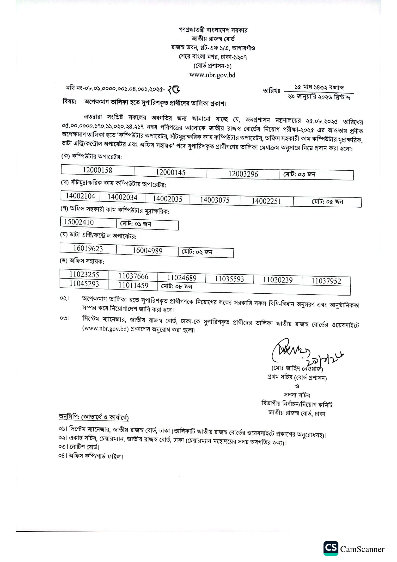 NBR Panel Result 2026 PDF 1