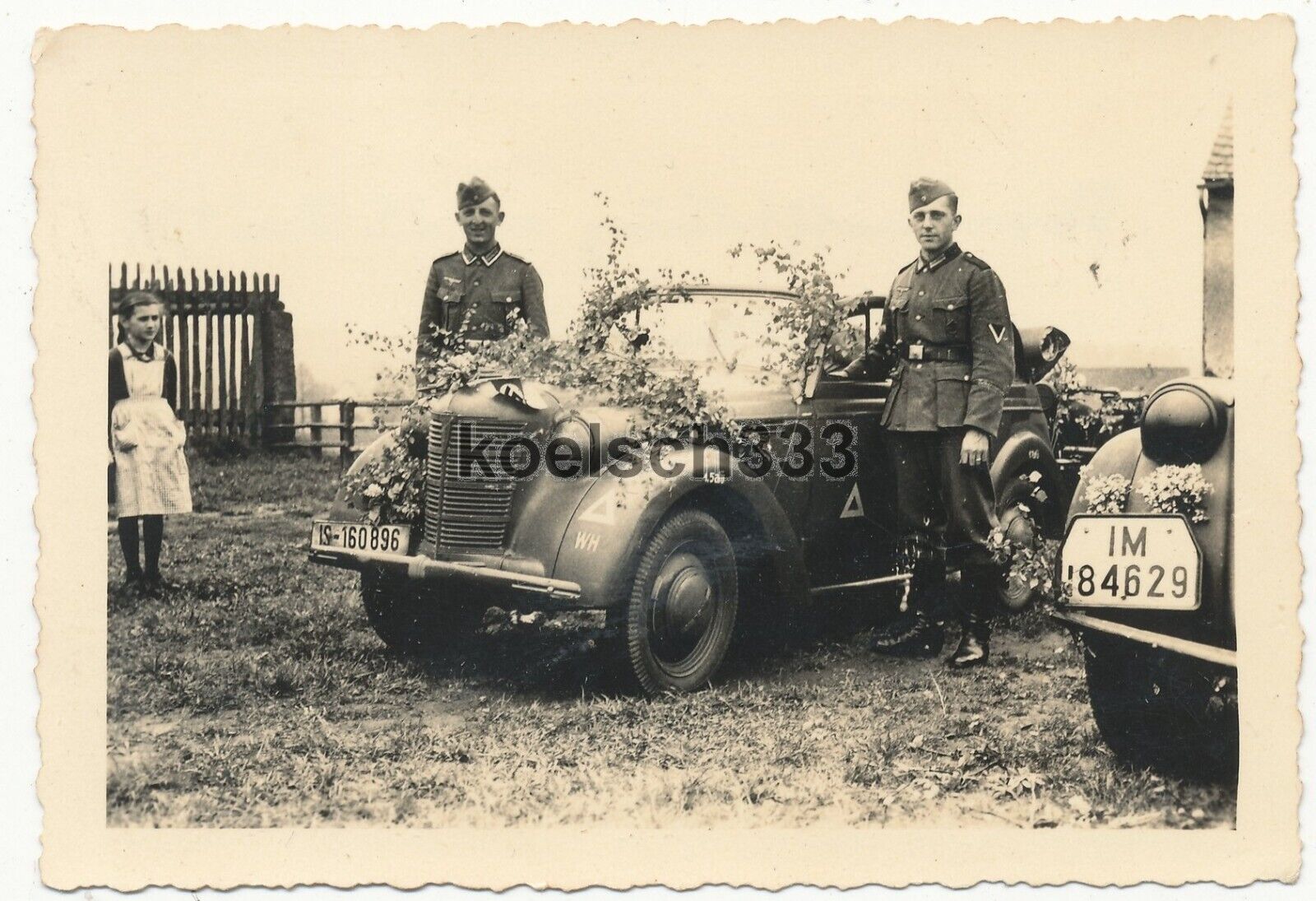 Foto Soldaten der Wehrmacht am geschmückten Opel Olympia PKW ... !