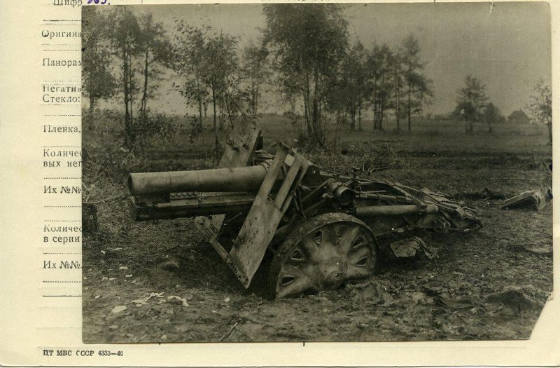 150-мм орудие противника, разбитое огнем армейской пушечной артиллерийской Севско-Речицкой ордена Су