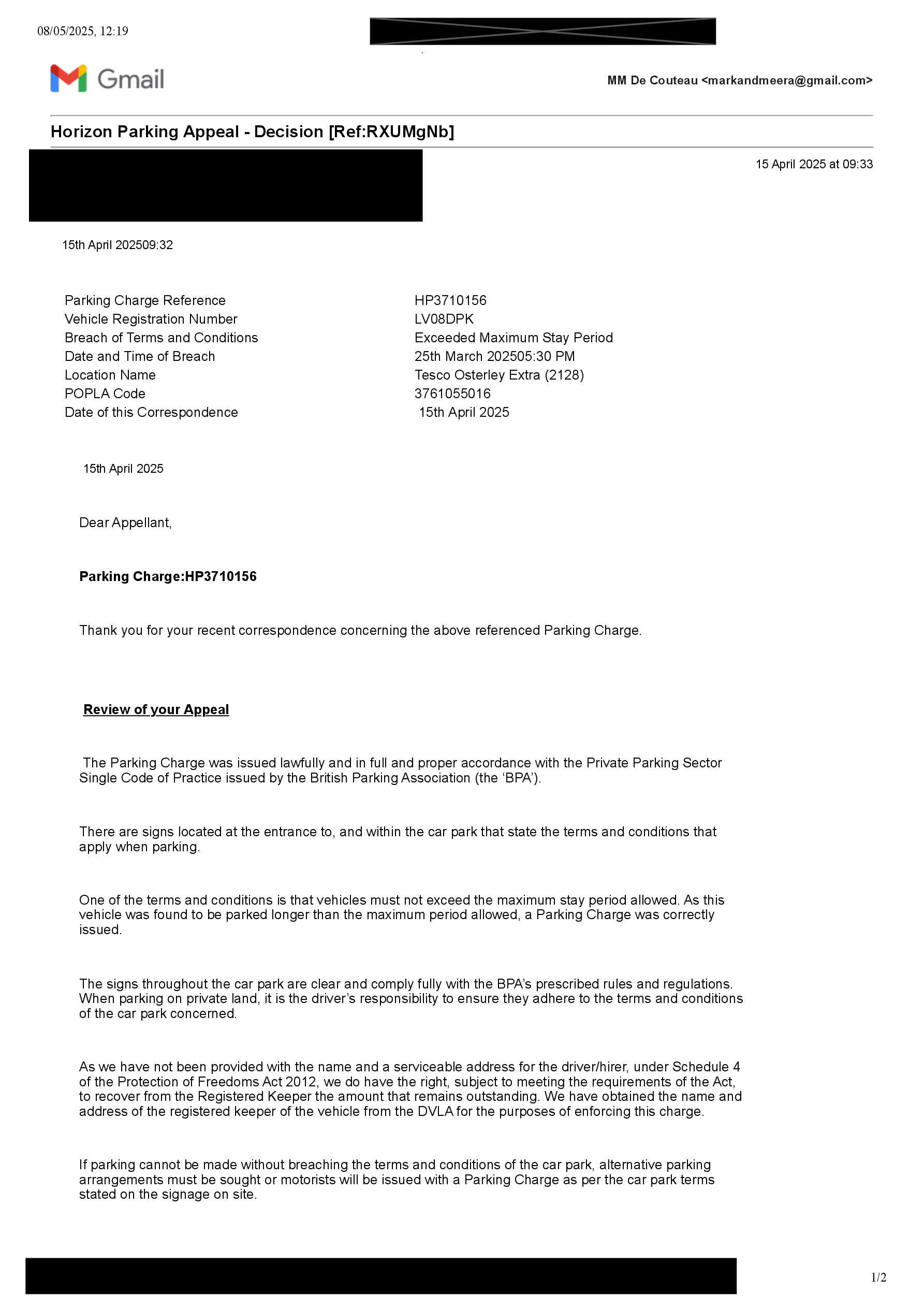 Gmail - Horizon Parking Appeal - Decision [Ref_RXUMgNb]