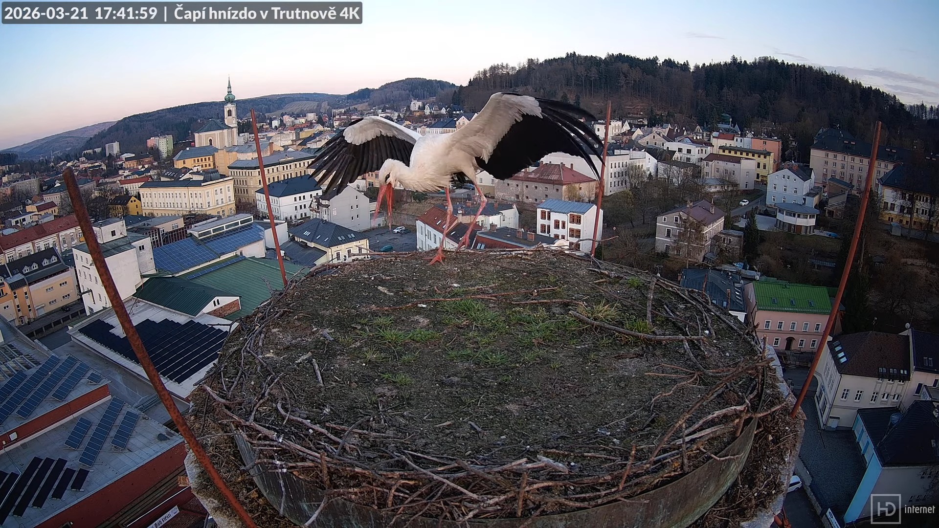 Tiešraide no stārķa ligzdas uz alus darītavas skursteņa Trutnovā 14 27 22 screenshot