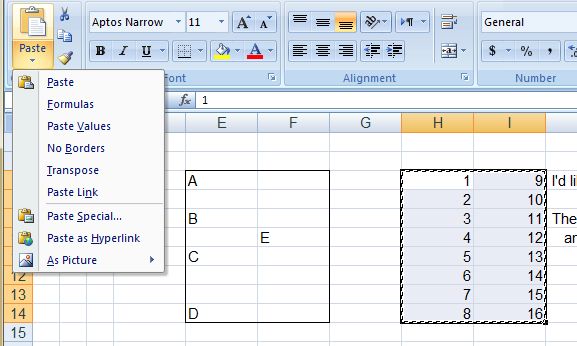 Paste options