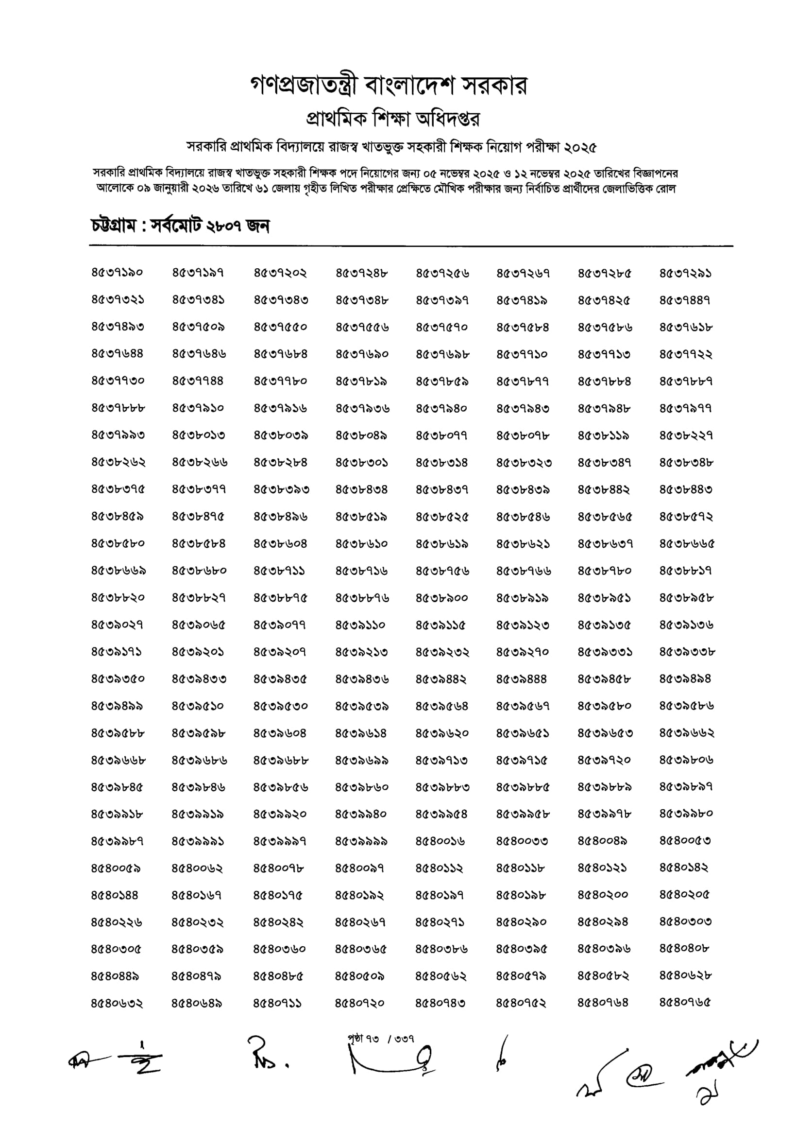 Primary MCQ Exam Result 2026 PDF 075