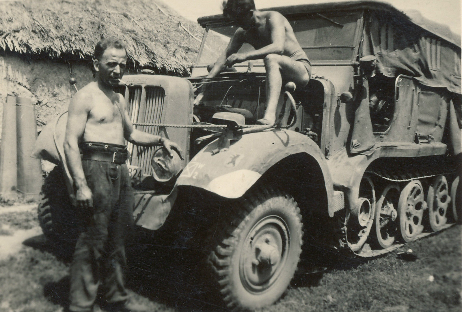 Foto 2.Wk Soldat Halbketten Fahrzeug Sonder-Kfz Panzer Tank Kennung Bär