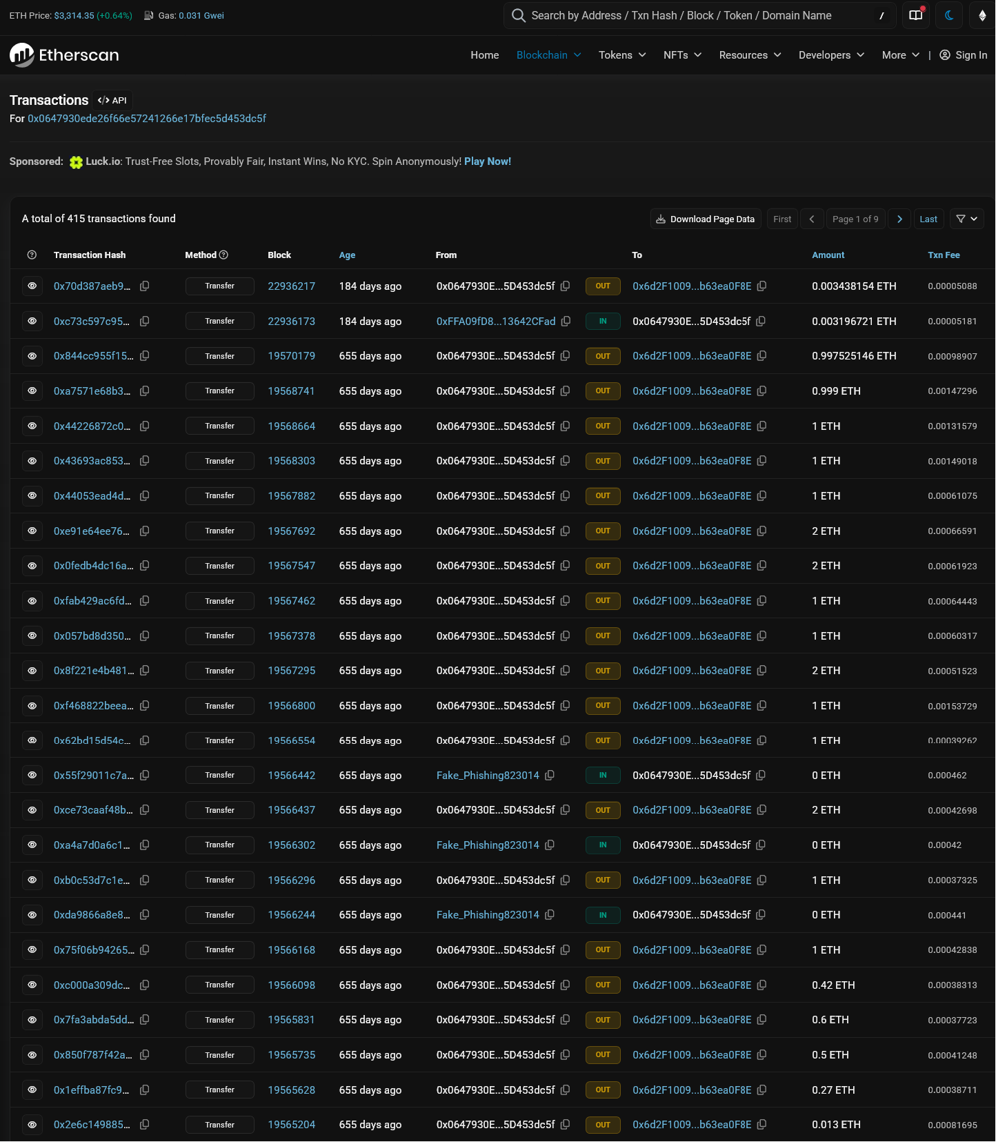 03 Historical ETH Deposit - Etherscan