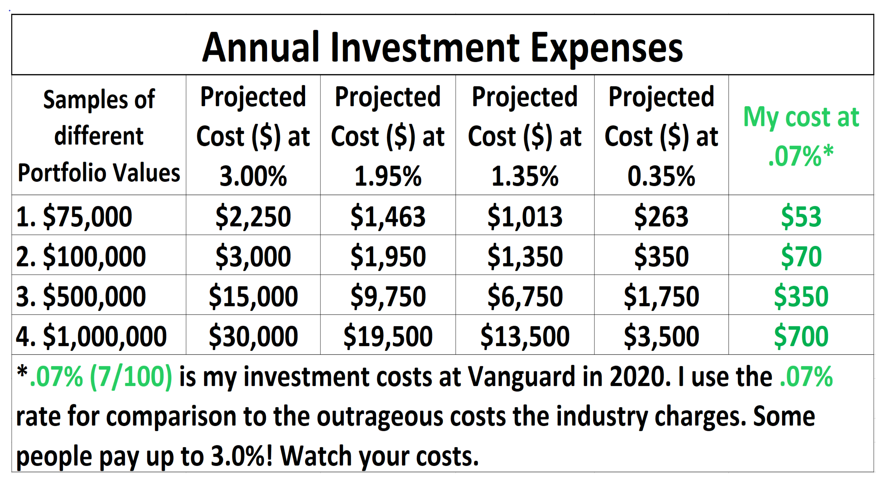 Costs Comparison to .07% of my cost