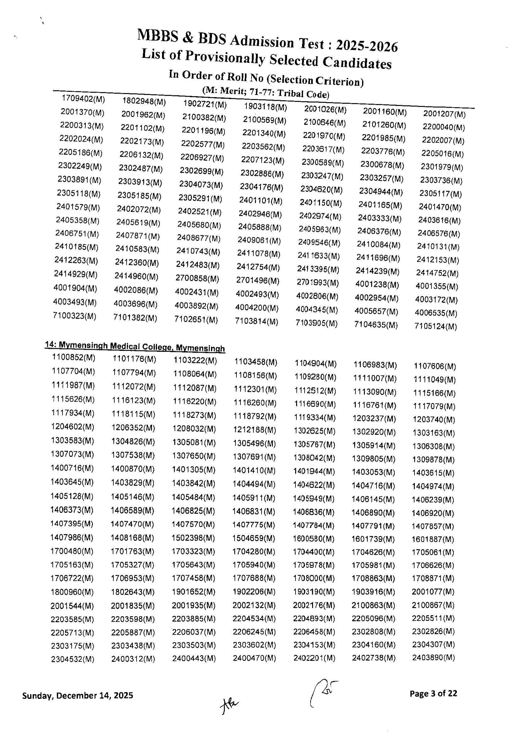 Medical MBBS Admission Test Result 2025 2026 Session PDF 05