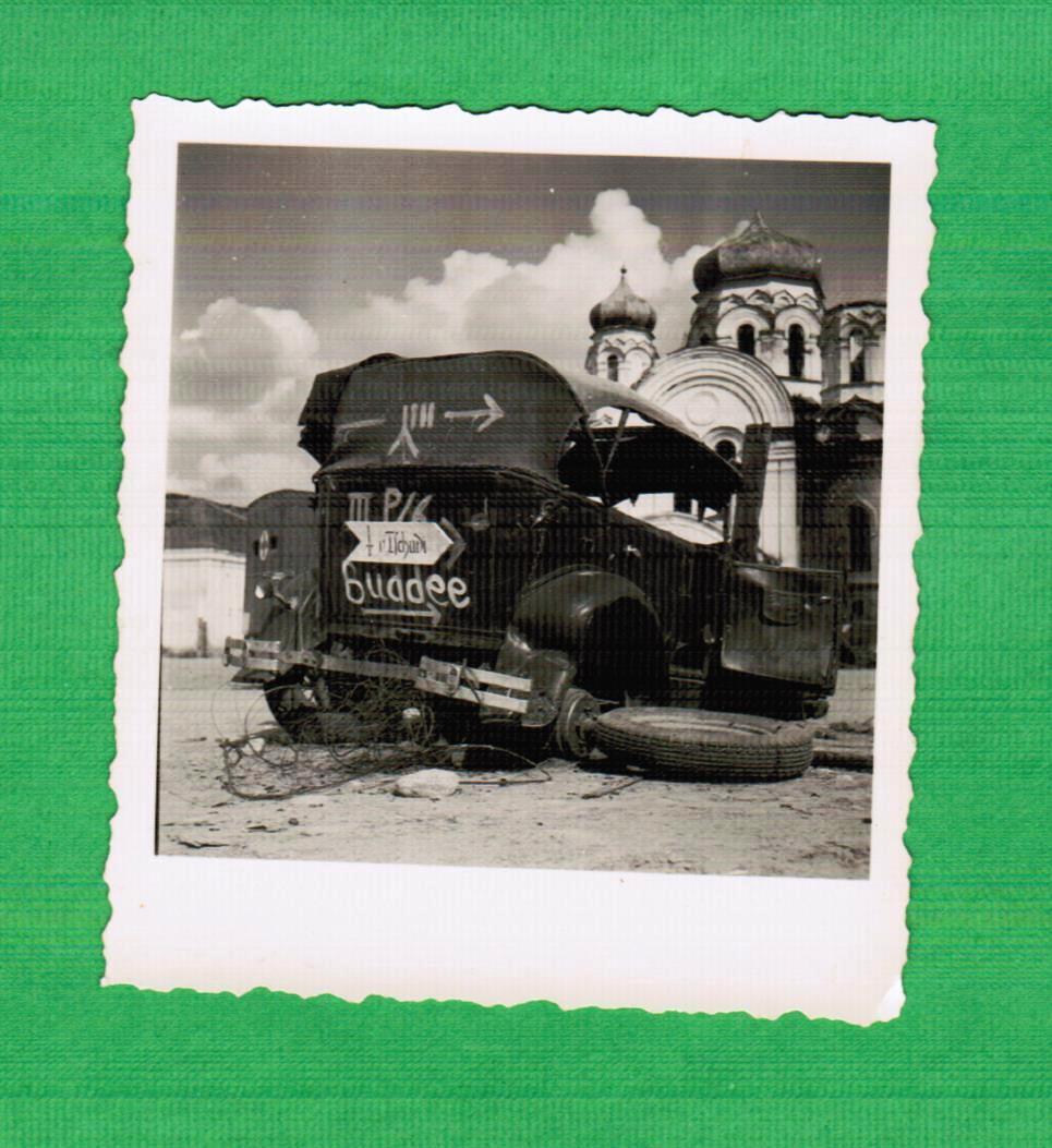 Wegweiser an zerst. KFZ Wehrmacht Rußland Feld