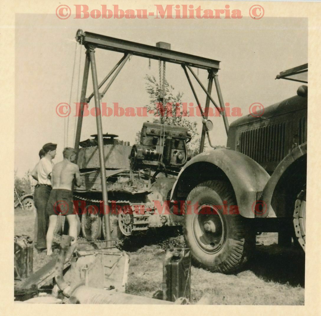 Frontwerkstatt Werkstattzug Motor-Wechsel Panzerkampfwagen 38(t) Stabo Kran