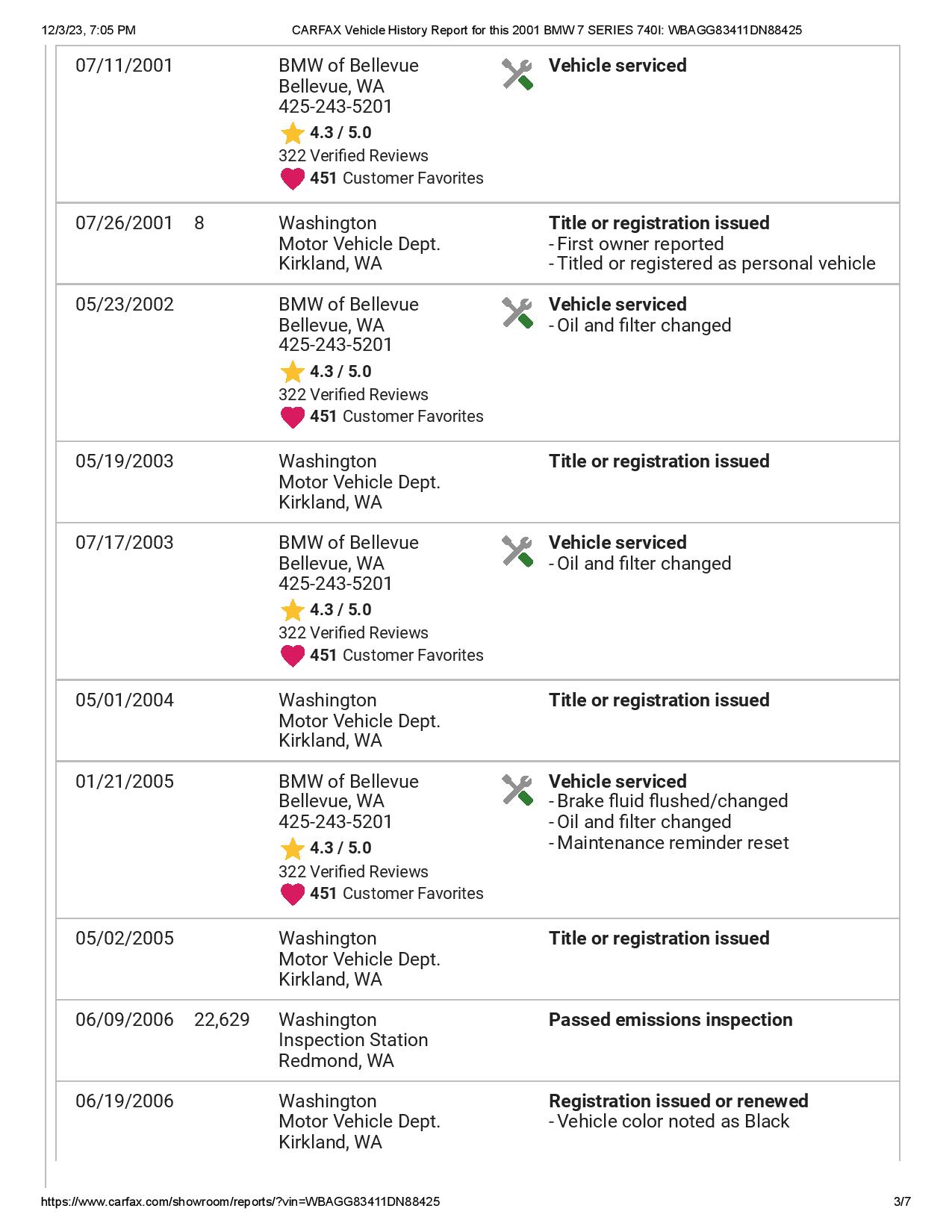 CARFAX Vehicle History Report for this 2001 BMW 7 SERIES 740I_ WBAGG83411DN88425-page-003