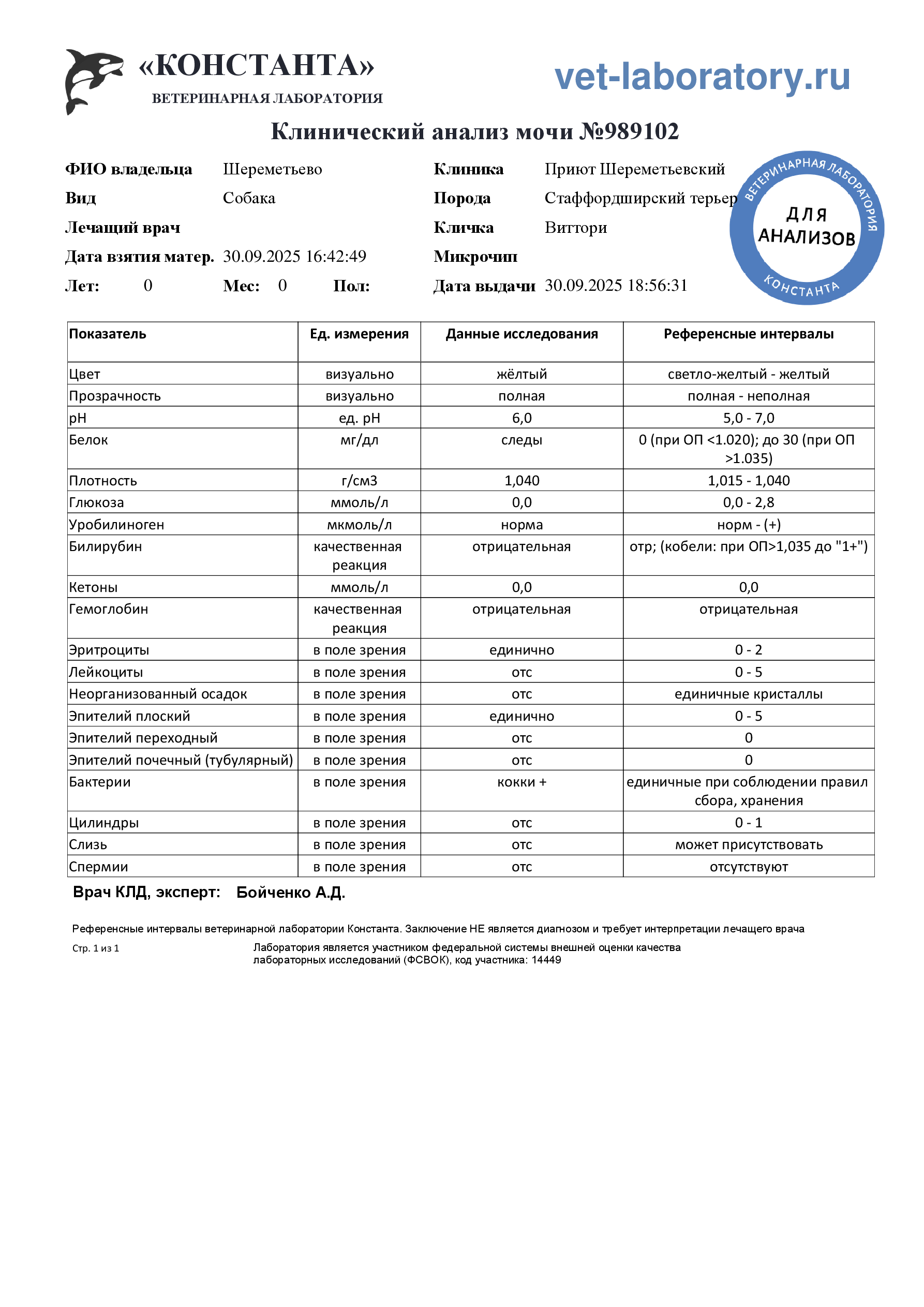 Клинический анализ мочи (989102)