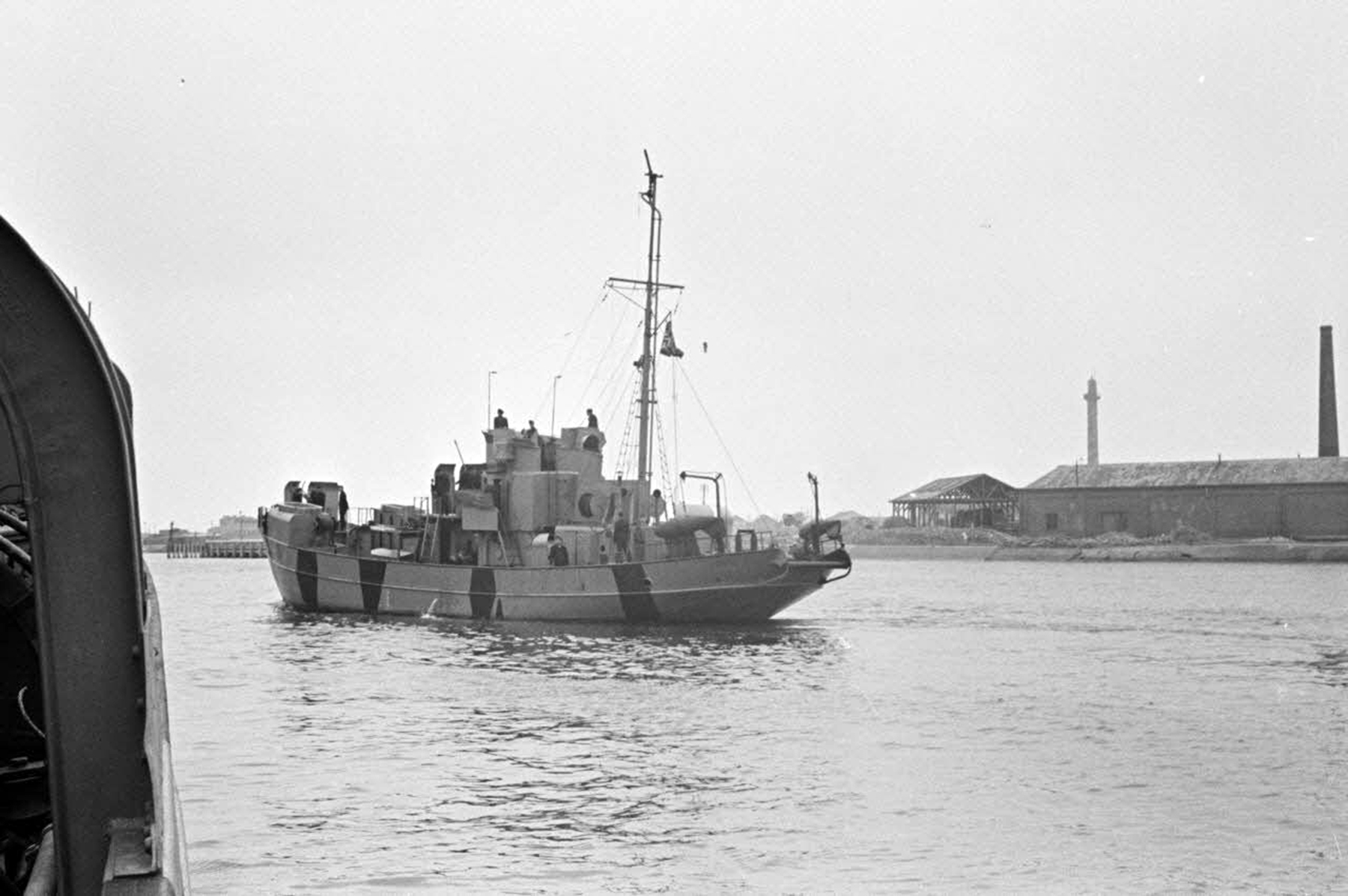 Le dragueur de mines allemand (Sperrbrecher) récemment modifié en bâtiment lance-flammes ou bateau-p