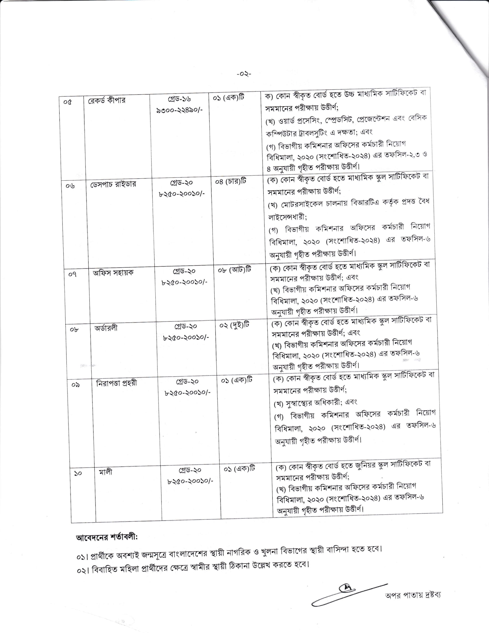 Office of the Divisional Commissioner Khulna Job Circular 2026 PDF 2