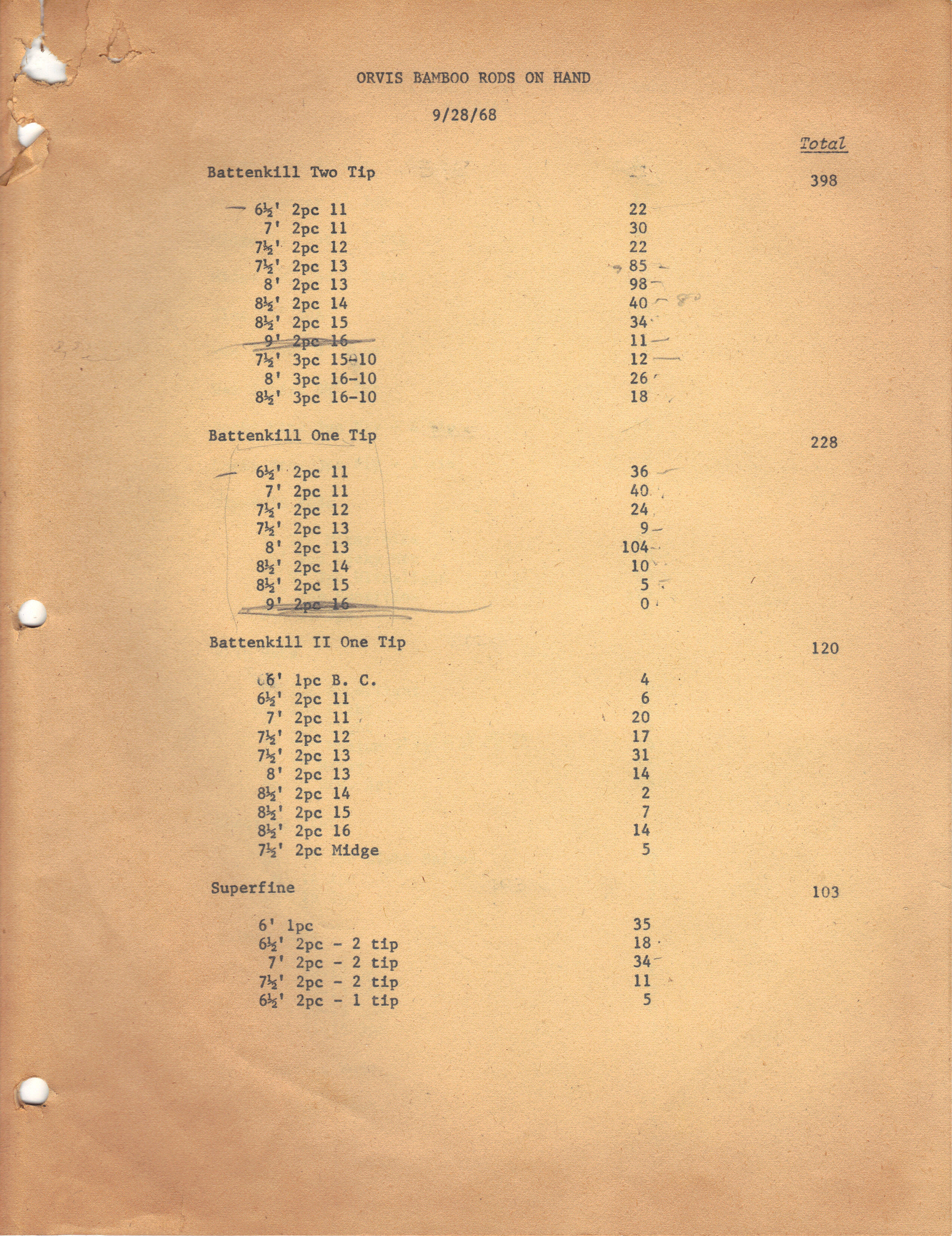 Orvis Records 1969 - rods on hand 9-28-68 1