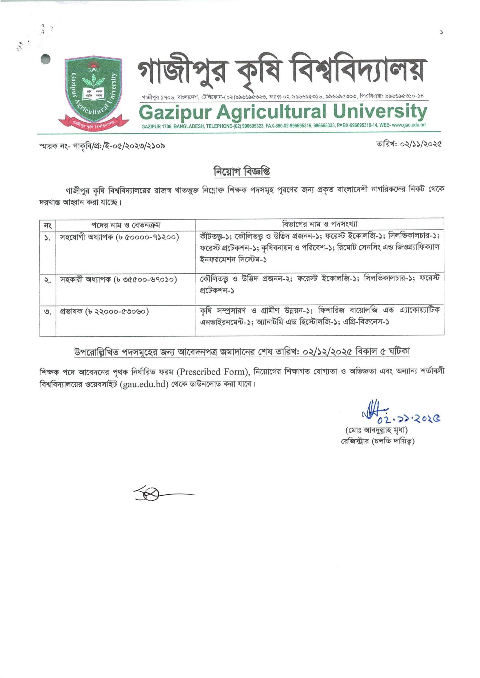 GAU Teacher Job Circular 2025 PDF 1