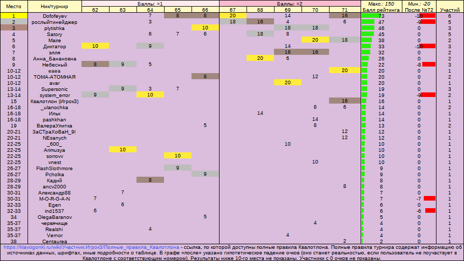Квалотлон №71, рейтинг