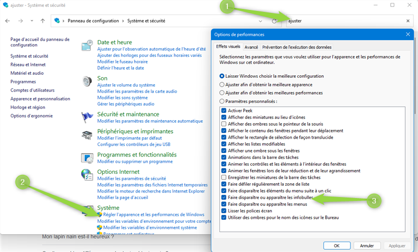 Infobulles ôter ou mettre