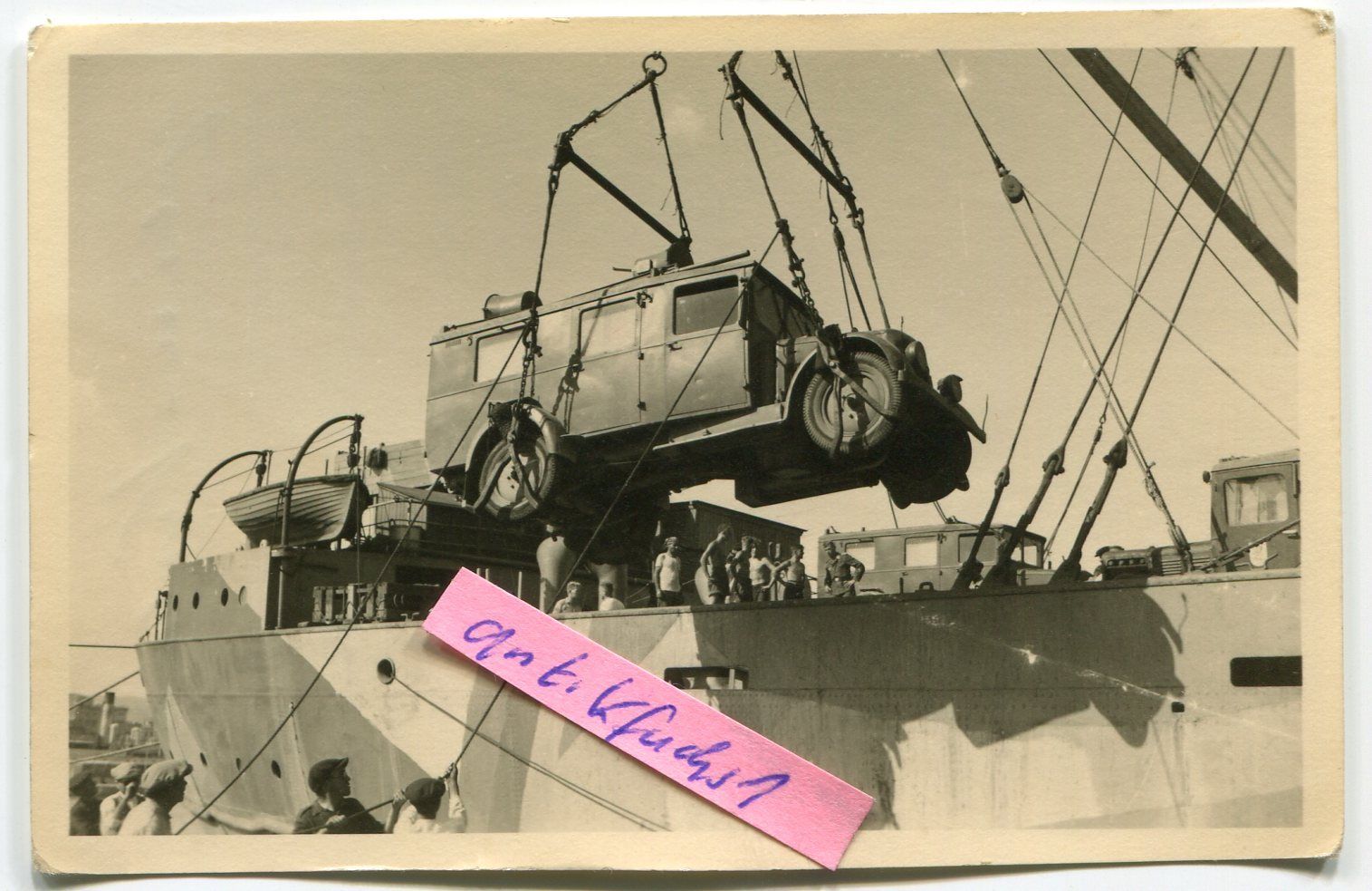 Propaganda-LKW am Schiff-Kran für Afrika beim Af