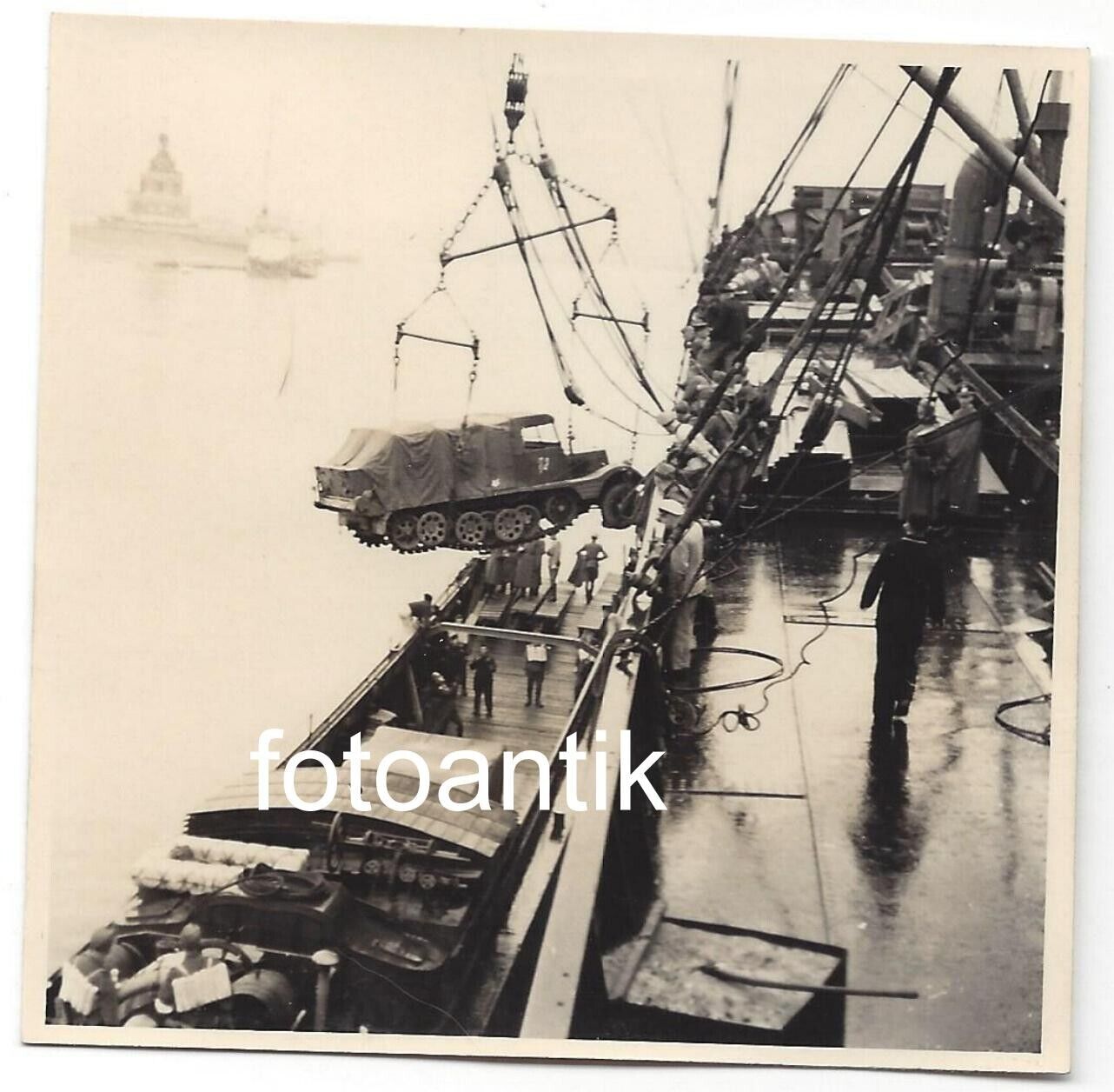 Foto Operation Seelöwe Frankreich Hafen Schiff Frachter Panzer Halbkette (2)