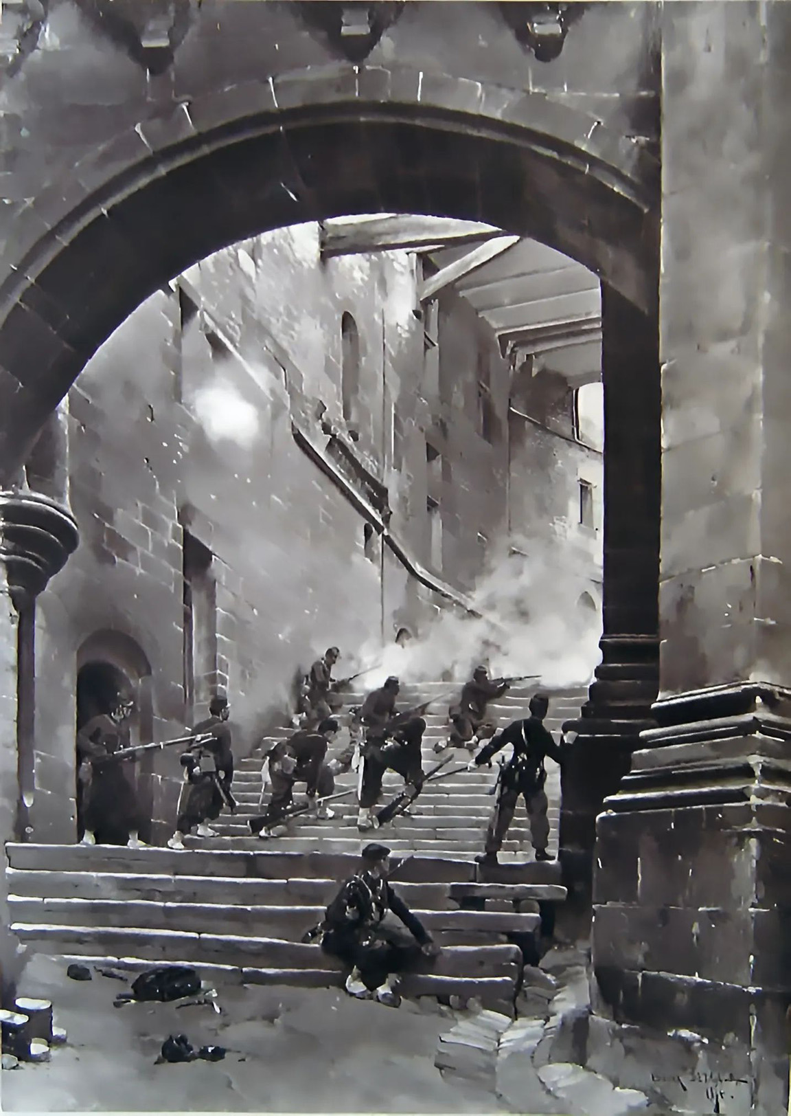 Franco prusiana ladonchamps infantería de linea y artilleros en el ataque al castillo de Ladonchamps