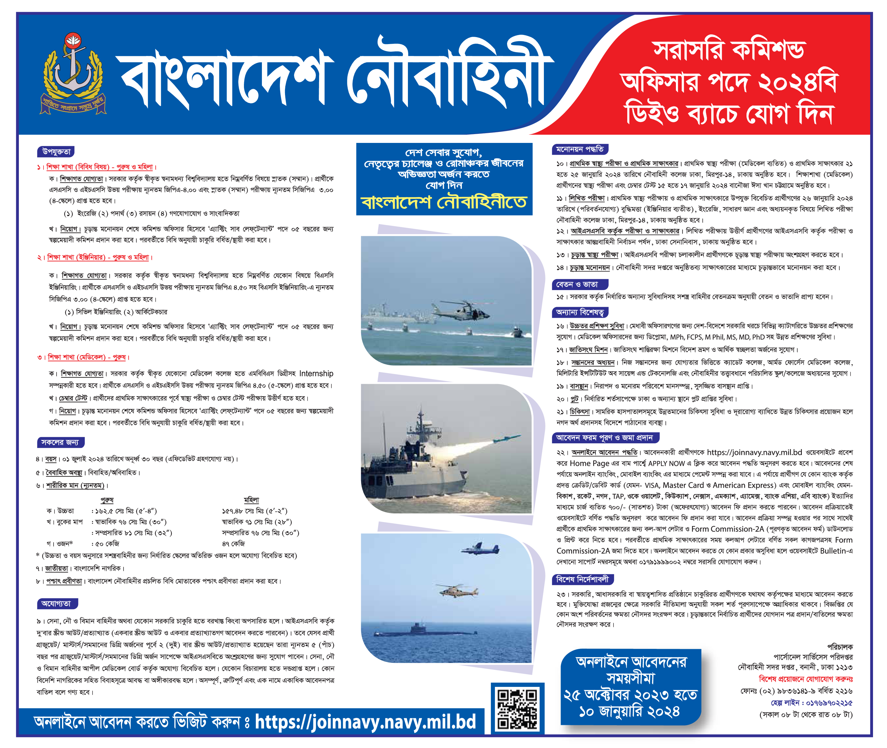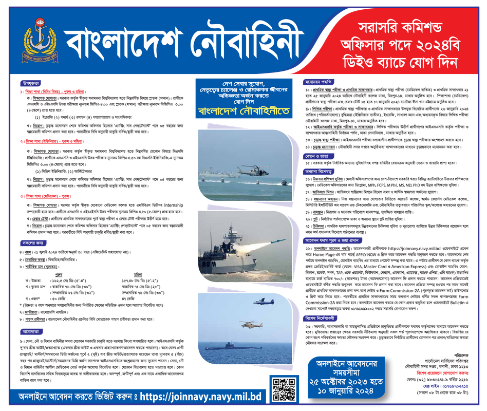 Bangladesh Navy Commissioned Officer Job Circular DEO Batch 2024B PDF