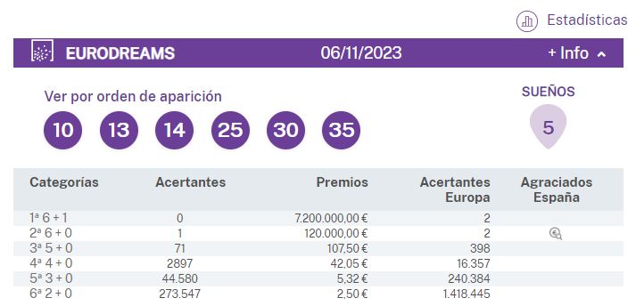 premios iniciales jornada 1 eurodreams