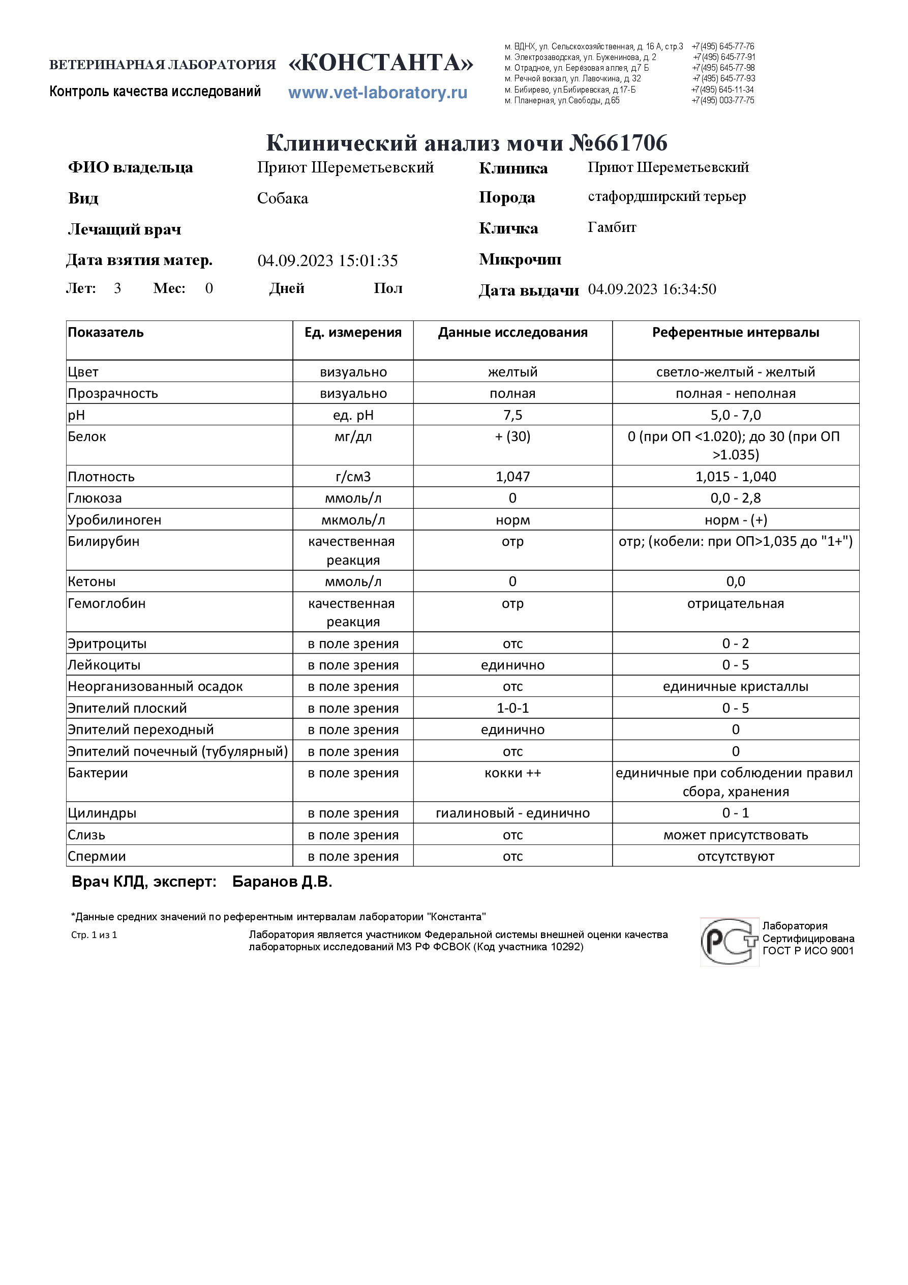 Клинический анализ мочи (661706)