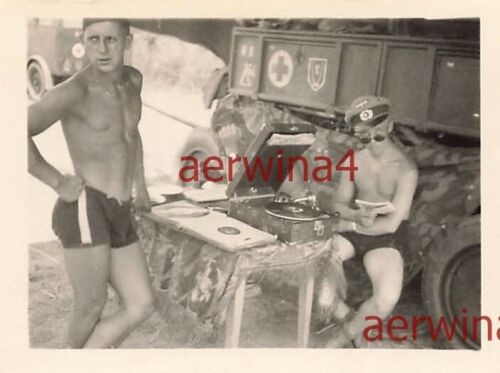 nackte Soldaten Sanitätswagen mit Divisionszeichen Naoussa Kavala Griechenland