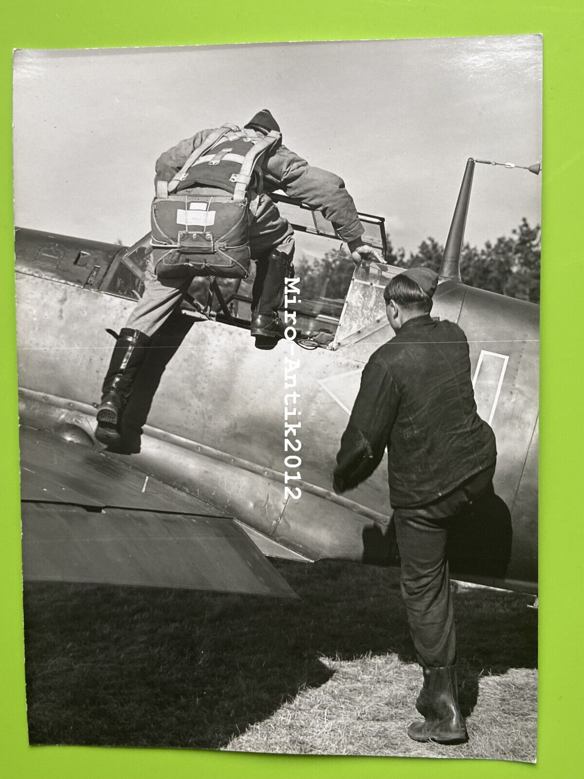 Gross Foto, Messerschmitt Bf 109, Flugzeugführer steigt in seinen Sitz (N)50719