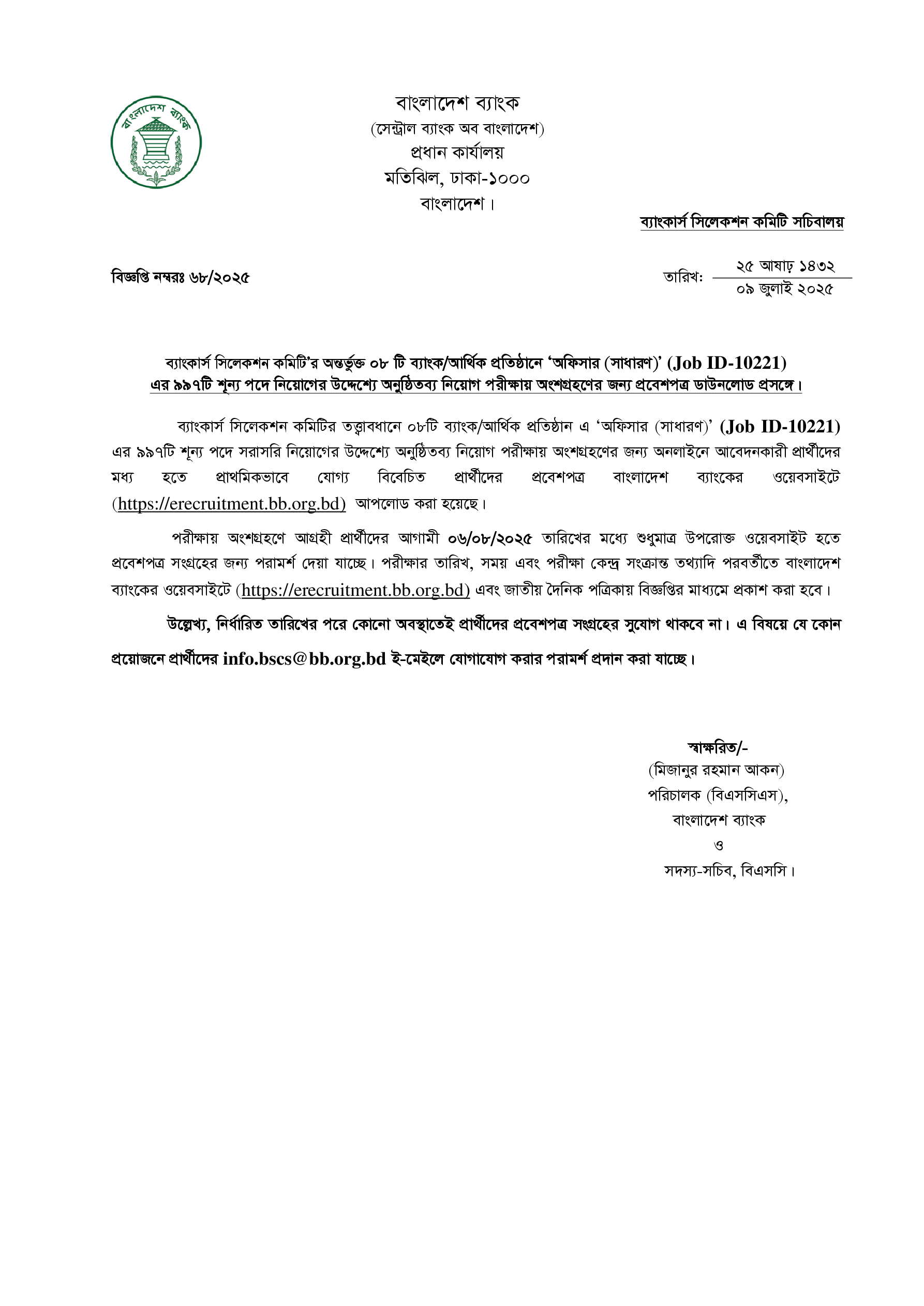 Combined 8 Bank Officer (General) Admit Download Notice 2025 PDF