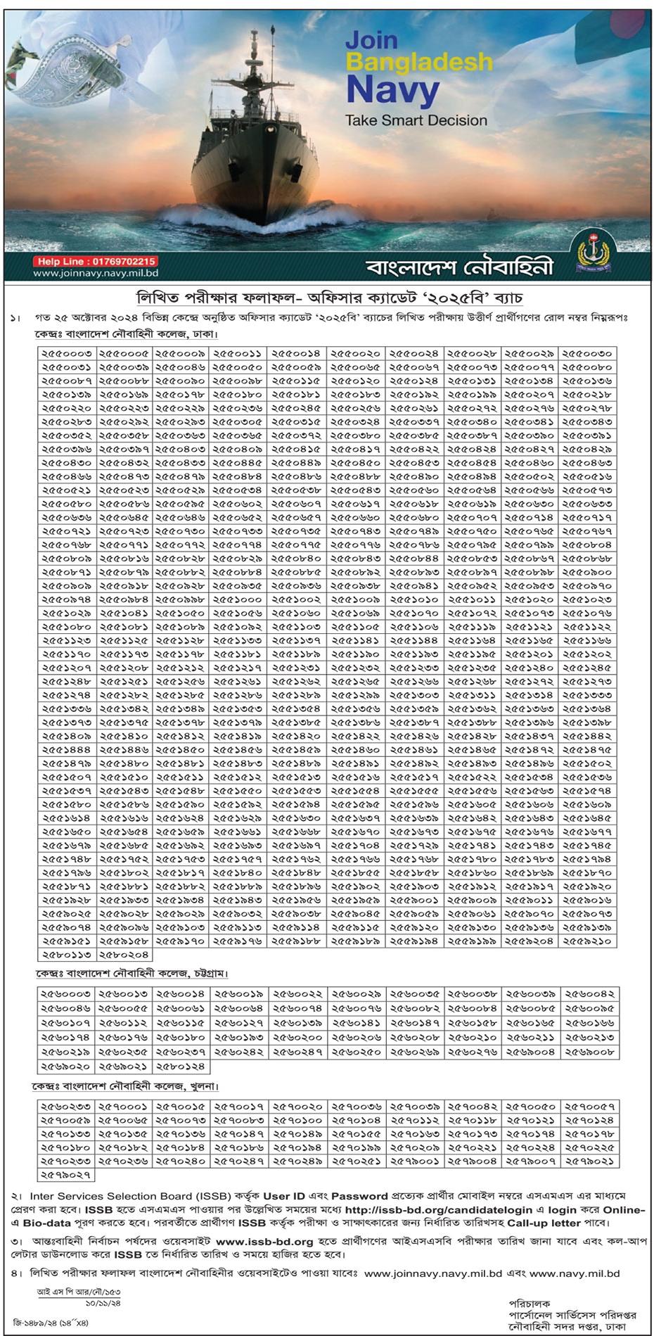 Bangladesh Navy 2025B Officer Cadet Batch Exam Result 2024