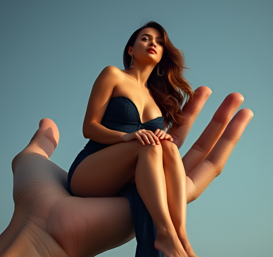sexy_woman_sitting_on_open_giant_male_hand_691453191