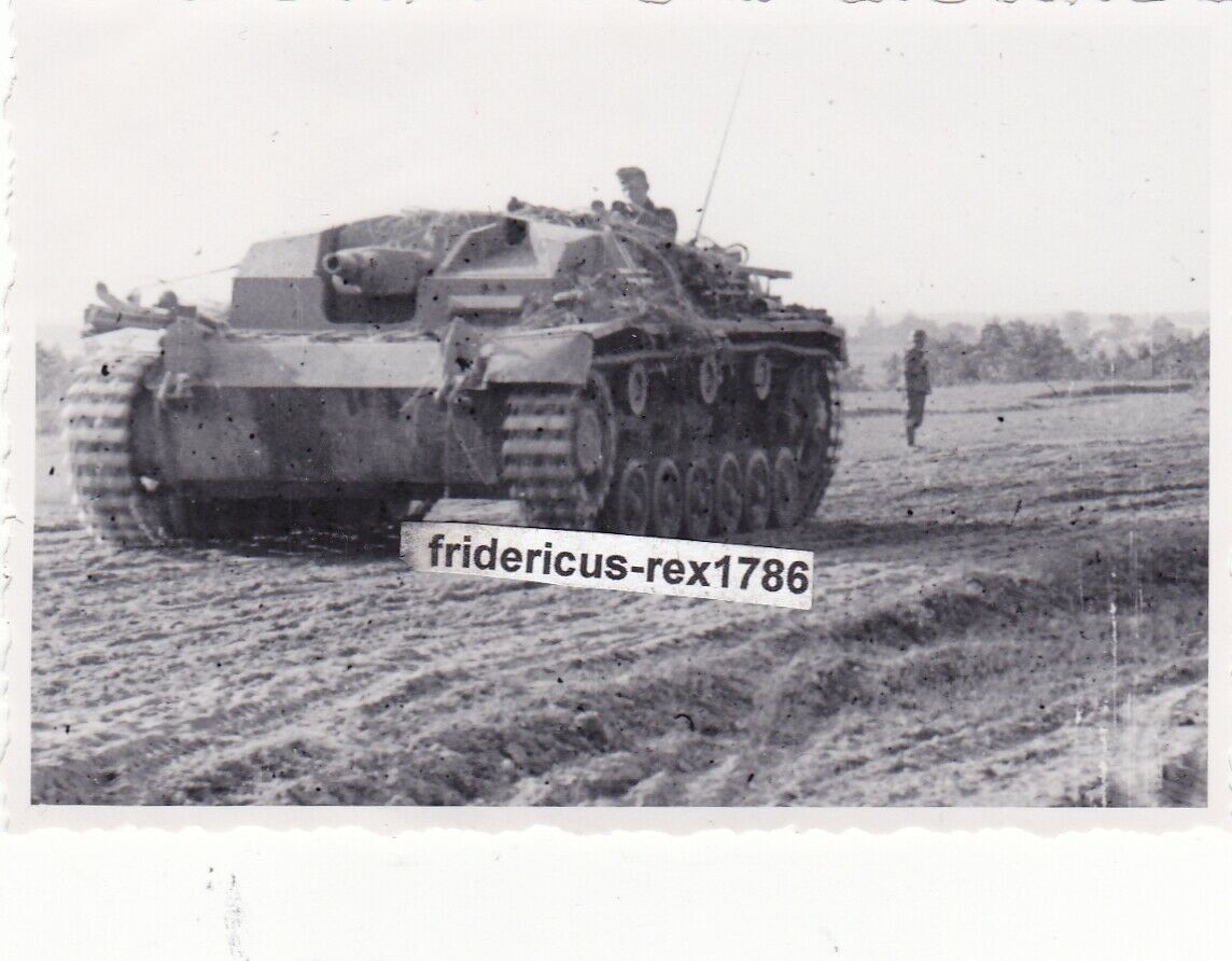 Foto Panzer Tank Sturmgeschütz StuG Abt. camo mit Besatzung Fron